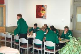 WSG Swarovski Wattens: Unsere Mannschaft kam gestern Abend nach einer langen Busfahrt gegen 19 Uhr wohlauf "im Osten" an. Heute Früh wurde ausgiebig gefrühstückt. Anschließend ging es um 10:15 Uhr zu einer Mannschaftsbesprechung inklusive Videostudium. Unmittelbar nach der Videoanalyse wurde leicht trainiert - oder wie man es in der Trainerfachsprache nennt, aktiviert. Um 12:15 Uhr gibt es das obligatorische Mannschaftsmittagessen, ehe um 15:45 Uhr die finale Phase und der Match-Countdown beginnt. Unser Team wohnt - wie bei den meisten Reisen in Richtung Ostösterreich - auch diesmal wieder in der Sportschule Lindabrunn. Unter optimalen Bedingungen (super Trainingsplätze und unglaublich freundliches Personal) kann man sich hier optimal auf wichtige Spiele vorbereiten.