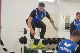 Dicke Schneeflocken rieselten vor den Fenstern der Wattener Kraftkammer, als sich unsere Mannschaft zur zweiten Vorbereitungswoche im Gernot Langes Stadion einfand. An ein Training mit dem Ball ist weiterhin nicht zu denken, auch das geplante Testspiel gegen die SVG Reichenau am Samstag fiel dem Wetter zum Opfer. "Show must go on", also schickte unser Athletikcoach Johannes Grünbichler seine Truppe durch acht intensive Stationen, die Kraft und Stabilisation versprachen. Kreuzheben, Kniebeugen mit Ketten, Bankdrücken mit Freihanteln - hier wurde jeder Muskel in die Mangel genommen. Um 18:45 wartet bereits die nächste Einheit in der Wattener Sporthalle.