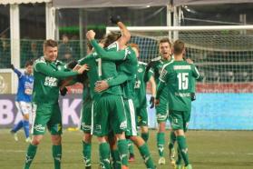 Vor der wichtigen Partie, die von manch einem Medienvertreter als "6-Punkte-Spiel" bezeichnet wurde, standen die Zeichen auf Angriff. Der Heimsieg sollte her. Aus diesem Grund schickte Trainer Silberberger auch eine offensiv eingestellte Mannschaft aufs Feld. Im 4-3-3 ging es los, der Gegner wurde früh gestört und permanent unter Druck gesetzt. Das machte sich bezahlt. Schon früh kommt unser Team zu Chancen, doch Niels-Peter Mörck, Milan Jurdik und Christian Gebauer können die Chancen (noch) nicht nützen. Die grün-weiße Hintermannschaft nimmt den wichtigsten FAC-Spieler, Marco Sahanek, gut aus dem Spiel. Der Offensivspieler ist kaum ins Spiel eingebunden, wirkt fast isoliert. Es dauert bis knapp vor der Halbzeit, bis der FAC zu einer ersten Möglichkeit kommt. Der pfeilschnelle Flavio dribbelt in den Strafraum, kommt zum Schuss, der Ball geht aber am langen Pfosten vorbei.