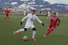 Minusgrade und ein eisiger Wind erwarten unsere Mannschaft bei der Ankunft in Altach. Vor allem die steife Brise weht mit ziemlicher Wucht über den Kunstrasen in Altach. Nach zwei Stunden Busfahrt kommen wir pünktlich in Vorarlberg an, um das dritte Testspiel der Vorbereitung 2019 anzugehen. Benni Pranter muss verkühlt in Wattens bleiben, Felix Adjei ist dafür wieder mit von der Partie. Unsere Mannschaft braucht fünf Minuten, um ins Match zu finden, präsentiert sich ab dann aber spielfreudig und laufstark. Die Kugel rennt dahin, beide Teams probieren ob des Windes das Spielgerät am Boden zu halten. Die erste gute Möglichkeit hat Milan Jurdik, der nach Santin-Maßflanke den Kopfball knapp über das Tor setzt. In einer Vorarlberger Co-Produktion entsteht in der 29. Minute der Führungstreffer: Sebi Santin setzt die Altacher Abwehr aggressiv unter Druck, erkämpft sich den Ball und sieht Luki Katnik im 16er freistehend. Unser Stürmer nimmt sich das Leder gut mit, setzt sich gegen einen Verteidiger durch und bleibt im Duell mit dem Altach-Goalie eiskalt. Kurz vor der Pause haben die Altacher noch die große Chance auf den Ausgleich, Adrian Grbic haut einen Freistoß an die Stange. Mit 1:0 geht es in die Pause.