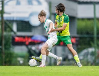 Die zweite Hälfte startete wie die Erste mit einer Chance für die Gamsstädter: Nach einem misslungenen Juniors-Rückpass (46‘) tauchte Vodilka alleine vor unserem Schlussmann auf, dem slowakischen Kitz-Stürmer versagten jedoch glücklicherweise die Nerven und sein Abschluss ging links am Tor vorbei. Danach flaute das Spiel bis zur 70. Minute etwas ab, ehe die Zuschauer:innen eine spannende Schlussphase zu Gesicht bekamen. Zuerst war es unser Neuzugang Raphael Gschösser, der bei einer mustergültigen Hereingabe von Babic in Rücklage geriet und den Ball in den Kitzbühler Abendhimmel bugsierte. Vier Minuten vor Schluss hatte der auf Seiten der Hausherren eingewechselte Wörndl (86‘) den vermeintlichen Siegtreffer am Kopf, sein Abschluss verfehlte unseren Kasten nur knapp. Den Schlusspunkt der Partie setzten wiederum die Grün-Weißen. Nach einem Gestochere im Strafraum (90+2‘) schaltete Tarkan Akbulut am schnellsten, sein Schussversuch ging aber deutlich über das Tor. Somit blieb es beim 0:0-Unentschieden, womit unsere Juniors nach vier Runden in der tt.com Regionalliga Tirol bereits sieben Zähler vorzuweisen haben.