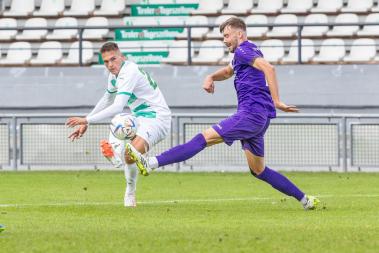 Und unsere Burschen erwischten einen Traumstart in die Partie: Nach einer dominanten Anfangsphase war es der von der Profiabteilung abgestellte Justin Forst, der nach zehn Spielminuten eine mustergültige Hupfauf-Vorlage zur 1:0-Führung im Kasten der Gäste unterbringen konnte. In der Folge nahmen allerdings die Violetten aus Innsbruck das Heft des Handelns in die Hand, die Mannschaft von Cheftrainer Manuel Ludwiger konnte aber mit etwas Spielglück die Führung zum Pausentee mitnehmen.