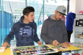 Sowohl am Freitag als auch am Samstag erschien eine Delegation unserer Mannschaft, posierte für Fotos, signierte eifrig Bälle, Shirts und Autogrammkarten und bequatschte die aktuelle Saison und das kommende Derby am Freitag mit den Shop-Besuchern. So wurde eine Vielzahl an Sport-Utensilien, welche die Einkäufer im Zuge des Oktoberfestes erstehen konnten, gleich einmal mit der Unterschrift eines WSG-Profis verziert.