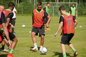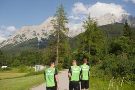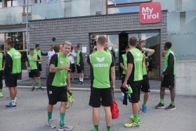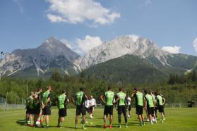 Montag um Punkt 12 bricht unsere Mannschaft inklusive Betreuerteam in Richtung Biberwier auf. Das "MyTirol"-Hotel im Antlitz der Zugspitze bietet unseren Grün-Weißen alles, was das Fußballherz begehrt. Top-Trainingsmöglichkeiten, Besprechungsräume, Regenerationsmöglichkeiten uvm.. Viel Zeit bleibt am ersten Tag nicht, um die Gegend zu erkunden, Sportchef Stefan Köck begrüßt die Kicker im Camp und erklärt, auf welche Dinge bei der WSG wert gelegt werden, wer welche Aufgabe im Verein bekleidet und welche Ziele wir in der neuen Saison gemeinsam verfolgen. Danach steht die erste Trainingseinheit am Programm: Vorbei an der Gernot Langes-Swarovski Straße geht es zehn Minuten einen Waldweg entlang, bis sich der Fußballplatz an einer Waldlichtung erstreckt. Bei Sonnenschein und hohen Temperaturen heißt es nun Kraft- und Ausdauertraining, bevor es an Passübungen und spielerische Einheiten geht. Danach treffen sich unsere Mannen erneut im Besprechungsraum, wo Trainer Thommy Silberberger ebenfalls über die Ziele, die Erwartungen an die alten und neuen WSG-Spieler und das bevorzugte Spiel-System referiert. Danach ist es Zeit zum Abendessen und gemeinsam die WM zu verfolgen.