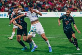 Im nahezu ausverkauften Sportpark Unterhaching legte der sechsfache Champions League-Sieger, bei dem mit Konrad Laimer auch ein Österreicher in der Startelf stand, feuerwerksartig los. Harry Kane stellte bereits drei Zeigerumdrehungen nach Anpfiff die frühe Führung für den deutschen Rekordmeister her. Unsere WSGler ließen sich davon aber nicht beirren und schüttelten den Rückstand bravourös ab. Unsere Elf wusste in der Anfangsphase gegen das Starensemble zu gefallen und setzte durch Matthäus Taferner exakt zehn Minuten später die erste Duftmarke. Den Weitschuss des Mittelfeldmotors konnte FC Bayern-Rückhalt Sven Ulreich allerdings ohne Probleme entschärfen (13‘). Der deutsche Rekordmeister hatte naturgemäß mehr Ballbesitz auf der Habenseite zu verzeichnen, während unsere Grün-Weißen versuchten, Nadelstiche über die pfeilschnellen Außenbahnspieler zu setzten. Kurz vor dem Pausenpfiff verzeichneten unsere Wattener den nächsten Vorstoß. Der vom Mittelfeld aufgerückte Cem Üstündag dribbelte sich im Sechzehner des FC Bayern fest und konnte schlussendlich in letzter Sekunde am Abschluss gehindert werden. Weil Adam Stejskal auf der Gegenseite einen wuchtigen Aznou-Kopfball von der Linie kratzen konnte und dessen Nachschussversuch in letzter Sekunde geblockt werden konnte, gingen Kapitän Valentino Müller & Co. mit einem respektablen 0:1-Rückstand in die Katakomben des Hachinger Sportparks (45‘).
