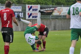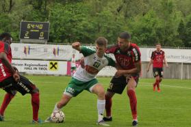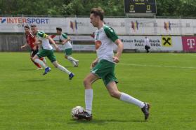 Es zeichnete sich bereits in Halbzeit eins ab, dass es heute sehr schwer werden wird. Unsere Jungs präsentierten sich zu ängstlich und mit viel zu viel Respekt vor dem Tabellenführer. Bereits in Minute sieben hätte es die Führung der Haller geben müssen, denn nach einem Laufduell zwischen dem nach seiner Verletzung wieder zurück gekommenen Sandro Samwald und dem Haller Angreifer, konnte dieser nur mehr mit einem Foul an der Strafraumgrenze gestoppt werden. Der anschließenden Freistoß ging ganz knapp am Tor vorbei. Im weiteren Verlauf versuchten wir ins Spiel zu kommen, aber mehr als ein Distanzschuss von David Stoppacher in Minute 13 kam zunächst nicht heraus. Auch die Haller waren vorläufig nur aus der Distanz gefährlich, so segelte ein Schuss in Minute 15 nur knapp an unserem Tor vorbei. Nach einer knappen halben Stunde ein gefährlicher Kopfball nach einem Eckball, der über das Tor gesetzt wurde. Praktisch im Gegenzug die größte Chance unserer jungen Wilden: Florian Galovic wird über links ideal bedient, sein Vorstoß in den Strafraum mit anschließendem Stanglpass wurde von der Hintermannschaft des SV Hall geblockt. Aus dieser Szene hätten wir mehr machen müssen. Kurz vor der Pause rettete uns Simon Beccari die Null, ein langer Ball und plötzlich stand der Haller alleine vor unserem Goalie, doch Simon konnte mit einer starken Fußabwehr zur Ecke klären.