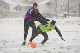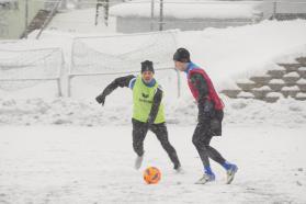 Dicke Schneeflocken hingen am heutigen Vormittag in der Luft, eine feine Schneeschicht zierte den Milser Kunstrasen. Dennoch konnte unsere Mannschaft dank enormer Bemühungen des Milser Platzwartes endlich mit dem Ball trainieren. Das weiße Leder blieb in der Kammer unserer Zeugwartes, um trotz des Schneefalles Herr der Kugel zu bleiben, feierten heute die orangen Ligabälle erstmals ihr Debüt. Nach einer längeren Aufwärm-Einheit war es danach an der Zeit, spielerisch zu glänzen. Trotz der schwierigen Bedingungen lief der Ball gut in den eigenen Reihen, beim Abschluss fackelten unsere Mannen nicht lange.