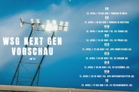 Gleich sechs Heimspiele stehen für die WSG Next Generation-Teams am kommenden Wochenende am Programm. In der untenstehenden WSG Next Gen-Vorschau haben wir alle Duelle aufgelistet.