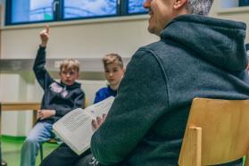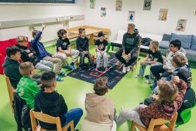 Am Österreichischen Vorlesetag ist WSG-Cheftrainer Philipp Semlic der Einladung in die Volksschule im Höralt in Wattens gefolgt.