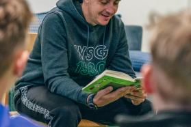 Anlässlich des Österreichischen Vorlesetags war unser Cheftrainer Philipp Semlic - seines Zeichens auch ausgebildeter Sport- und Mathematiklehrer - heute in der Wattener Volksschule im Höralt zu Gast. Eine Stunde lang las er den interessierten Kindern aus einem Fußballbuch vor, beantwortete viele Fragen zum Trainerdasein bei der WSG, analysierte mit ihnen die vergangenen Spiele und betonte die Wichtigkeit des (Vor-)Lesens. Abschließend wurden die Kids noch mit Autogrammkarten und Schlüsselanhängern überrascht.