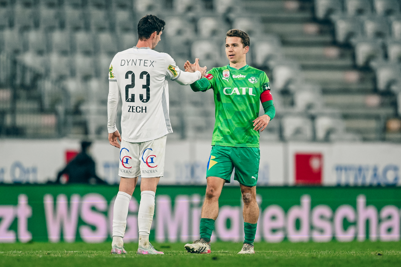 Es geht in die richtig heiße Phase in der ADMIRAL Bundesliga und für unsere Grün-Weißen stehen zum Beginn einer Englischen Woche zwei Duelle gegen die Vorarlberger Nachbarn am Programm. Zunächst geht es am Samstag auf Tiroler Boden um drei Punkte. Bereits am Dienstag sind unsere Jungs um Kapitän Valentino Müller, der einst im Dress der Altacher sein Bundesliga-Debüt feierte, dann im Schnabelholz-Stadion zu Gast. Die Rheindörfler lachen derzeit von der Spitze in der Qualifikationsgruppe – zuletzt konnte ein Heimsieg gegen den GAK eingefahren werden. Nur drei Zähler dahinter liegen unsere WSGler, die nach der schmerzhaften Niederlage bei den Blau-Weißen in Linz eine deutliche Reaktion zeigen wollen. Ademola Ola-Adebomi fällt krankheitsbedingt weiterhin aus und auch Thomas Geris (Muskelverletzung) steht am Wochenende nicht zur Verfügung.