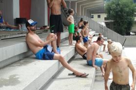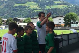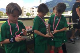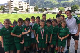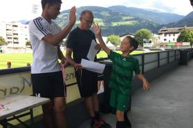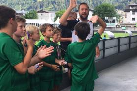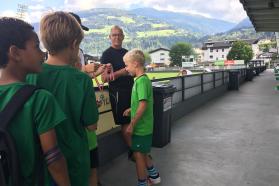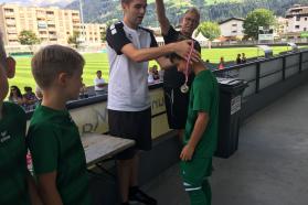 Der heutige Vormittag stand wieder ganz im Zeichen der eleganten Ballbehandlung. Schusstraining, Ballführung, Passen - auch das Einmaleins des Fußballs will gelernt sein. Die Kids und ihre Betreuer sind mittlerweile eine zusammengeschweißte Einheit und auch für die Campteilnehmer ohne Deutschkenntnisse gibt es so gut wie keine Verständigungsprobleme mehr. Wasserrutsche pantomimisch dargestellt? Kein Problem. Im Schwimmbad zeigten die jungen Wilden ihre akrobatischen Künste, egal ob vom Beckenrand oder vom Sprungbrett. Am ANchmittag stieg die Anspannung, denn die Siegerehrung des 5-Kampfes stand am Programm. So versammelten sich alle Kids auf den Tribünen des Gernot Langes Stadions und jede Gruppe kürte ihre drei besten Akteure. Lauter Jubel, wildes Abklatschen, geballte Fäuste im Antlitz des Triumphes begleiten das Geschehen. Für alle Teinehmer gab es einen verdienten Applaus und etwas zum Naschen. Die besten drei der jeweiligen Truppe erhielten natürlich eine Medaille. Eine besondere Überraschung verkündete Organisator Hans Köhle zum Schluss: Alle Mädels und Burschen wurden herzlich eingeladen, mit einer Begleitperson das Spiel der Kampfmannschaft gegen Lafnitz zu besuchen.