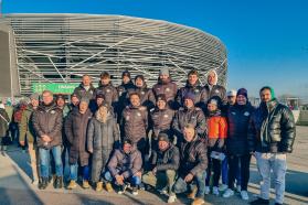 Natürlich haben wir auch die Möglichkeit genutzt und unseren WSG Next Generation-Absolvent Noah Ebner beim Training besucht, um anschließend ein gemeinsames Foto zu machen. Noah wechselte im Sommer 2025 zum FCA und setzt nun dort seine erfolgreich Ausbildung fort, u.a. ist er auch im erweiterten Kader der ÖFB U17 Nationalmannschaft, welche aktuell bei der U17-WM für Furore sorgt.Am Samstagvormittag stand für einen Teil der WSG NW-Trainer das Spiel der U19 des FCA gegen Bayern München (1:0) am Programm und für den anderen Teil eine Führung durch die Familienbrauerei Riegele. Wir wurden sehr freundlich und kompetent in die Kunst des Bierbrauens eingeweiht und konnten die Leidenschaft von 639 Jahre Brauereikunst kennengelernt.Nach dem Mittagessen im Riegele Wirtshaus (mit Hunderten HSV-Fans) ging es dann in die WWK Arena, wo die Abordnung der WSG mit mehr als 30.000 Fans einen 1:0-Sieg der Heimmannschaft gegen den Hamburger Traditionsverein feiern durfte. Damit war aber noch nicht genug mit Fußball: Sonntag ging es weiter nach Salzburg zum Spiel unserer WSG Profis gegen RB Salzburg - und wir wurden Zeugen eines leidenschaftlichen Spiels unsere Mannschaft und einem historischen 3:2 Erfolg über die Roten Bullen. Wahnsinn und Freude pur. Der nächste Dreier war im Trockenen und so konnten wir mit vielen interessanten Eindrücken, neuen Ideen und einem tollen Teamspirit die Reise Richtung Wattens antreten.